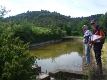 Puis plus haut nous découvrons le bassin qu’il a reconstruit et agrandit, changé d’argile en béton, en 1983 alors qu’il s’était installé huit ans avant en reprenant l’exploitation de son père, en 1975. Le bassin fait environ trois cent trente mètres cube d’eau, et se vide par une vanne à main dans le ruisseau qui s’écoule ensuite plus bas dans le Marderic. Les ragondins d’autrefois ne sont plus très présents, mais il en voit parfois.