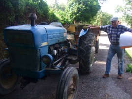 Dans un hangar il est fier de nous montrer ses tracteurs, le plus ancien de 1962, appartenait à son père, celui de 1966 un Ford à boite électrique, un de 1968 et le « bébé » de 1986, plus moderne: il a plus de trente ans! Il les garde en état de marche pour ne pas avoir à défaire à chaque fois les machines différentes accrochées derrière. A presque 80 ans il n’en a plus la force.