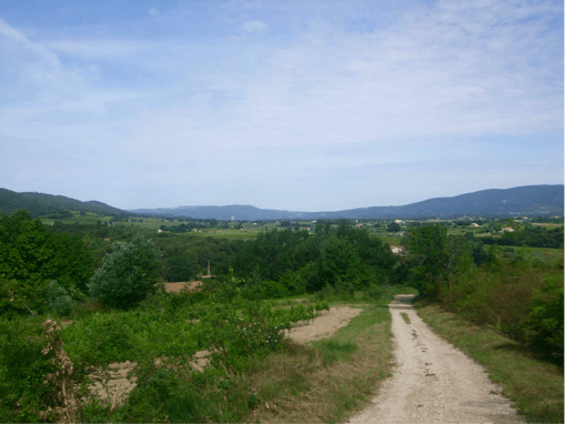 Son chemin, ancienne route de Pertuis par le domaine Val Jouannis, a été refait il y a trois ans et chargé de gravillons, ce qui facilite les transports par temps de pluie. Il nous décrit enfin les deux ponts, l’un au sud qui a remplacé le gué de son enfance quand il le passait pour aller à l’école, et l’autre au nord, sur le même Marderic, qui a été refait en1980 après des dizaines d’années où ce n’était que deux poutres traversant le ruisseau! En Aout 1986 une crue énorme a quand même submergé le pont.