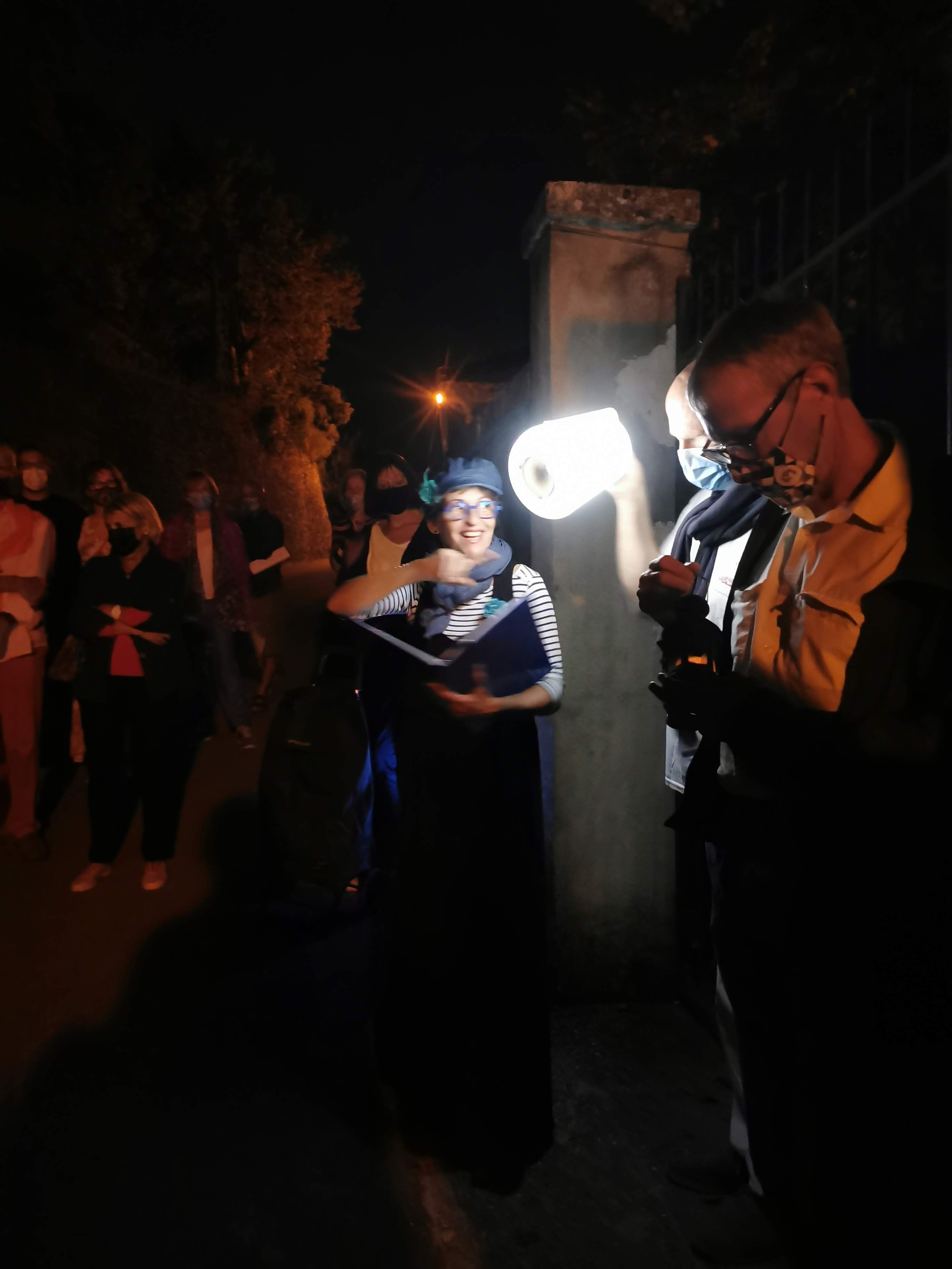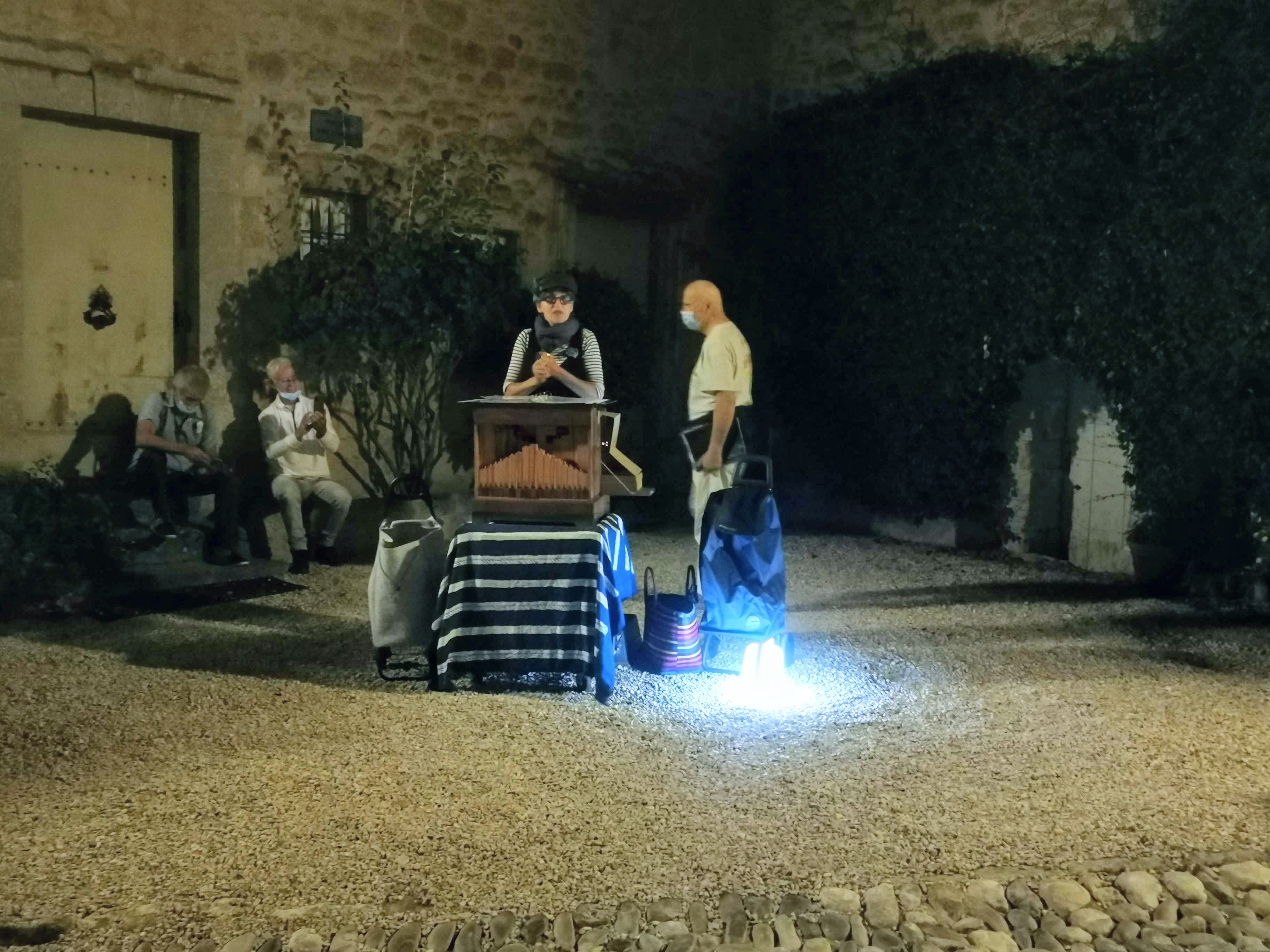 Quelques belles scènes nocturnes ont pu être prises en photos (ci-dessous) de notre chanteuse accompagnée de son orgue de barbarie (merci à tous les membres du bureau qui ont porté, éclairé…).