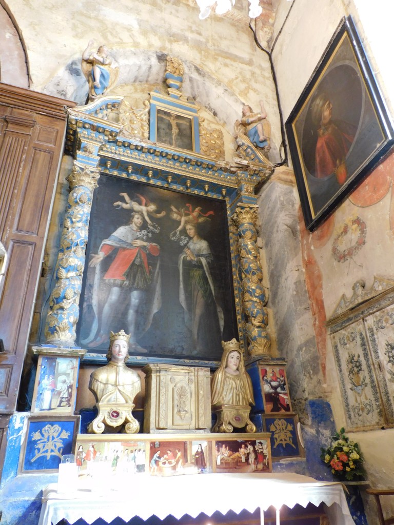 L’autel de Saint Elzéar et Sainte Delphine avec sur le mur du transept le portrait d’Urbain V le pape qui a canonisé Saint Elzéar. Face à l’église Vous verrez l’ancien Presbytère du XVIII°siècle.